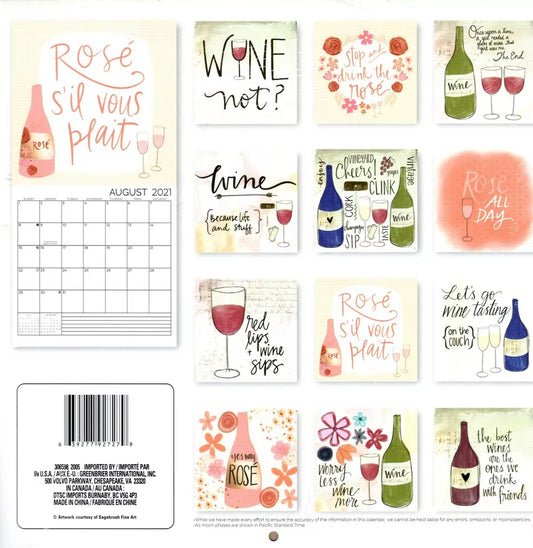 2021 12 Month Wall Calendar - Cheers, Enjoy, Wine - with 100 Reminder Stickers