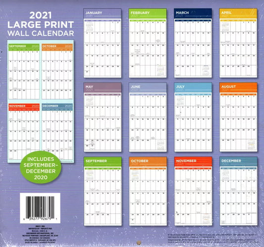 2021 16 Month Wall Calendar - Large Print Calendar - with 100 Reminder Stickers