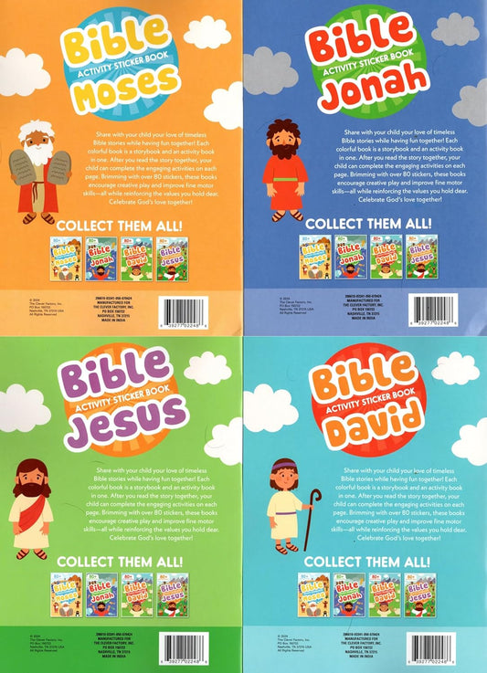 Bible Activity Jonah, Moses, Jesus, David - Sticker Book Over 80 Stickers (Set of 4 Books)
