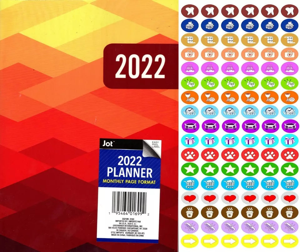 2022 Planner Calendar - School College Monthly Agenda + 100 Stickers v1