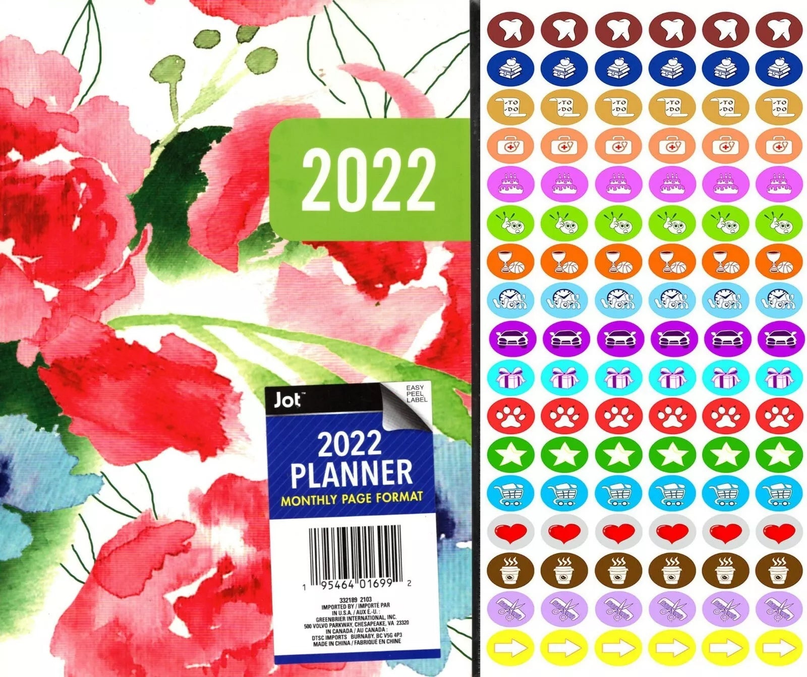 2022 Planner Calendar - School College Monthly Agenda + 100 Stickers v3