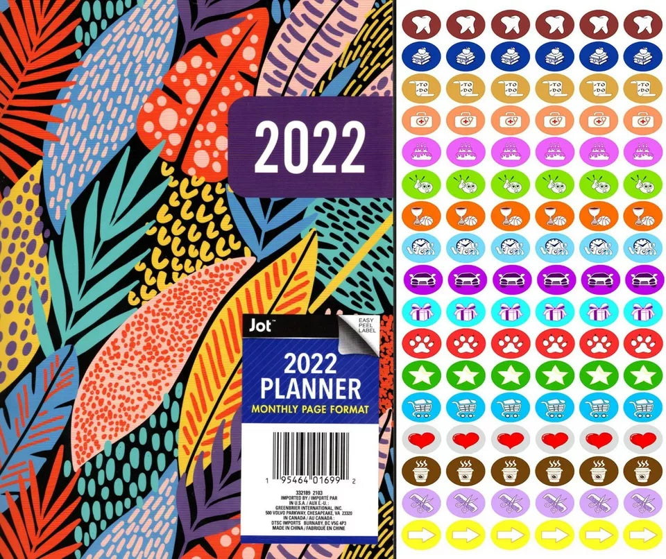 2022 Planner Calendar - School College Monthly Agenda + 100 Stickers v4