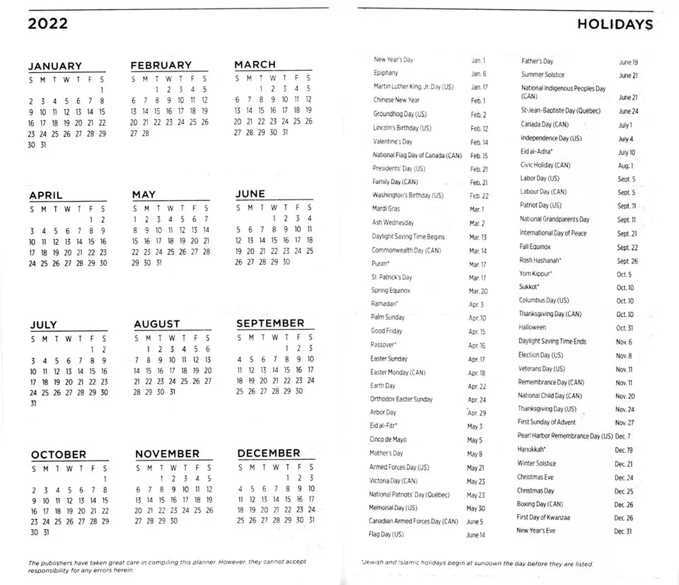 2022 Weekly Pocket Appointment Planner / Calendar / Organizer (Black)