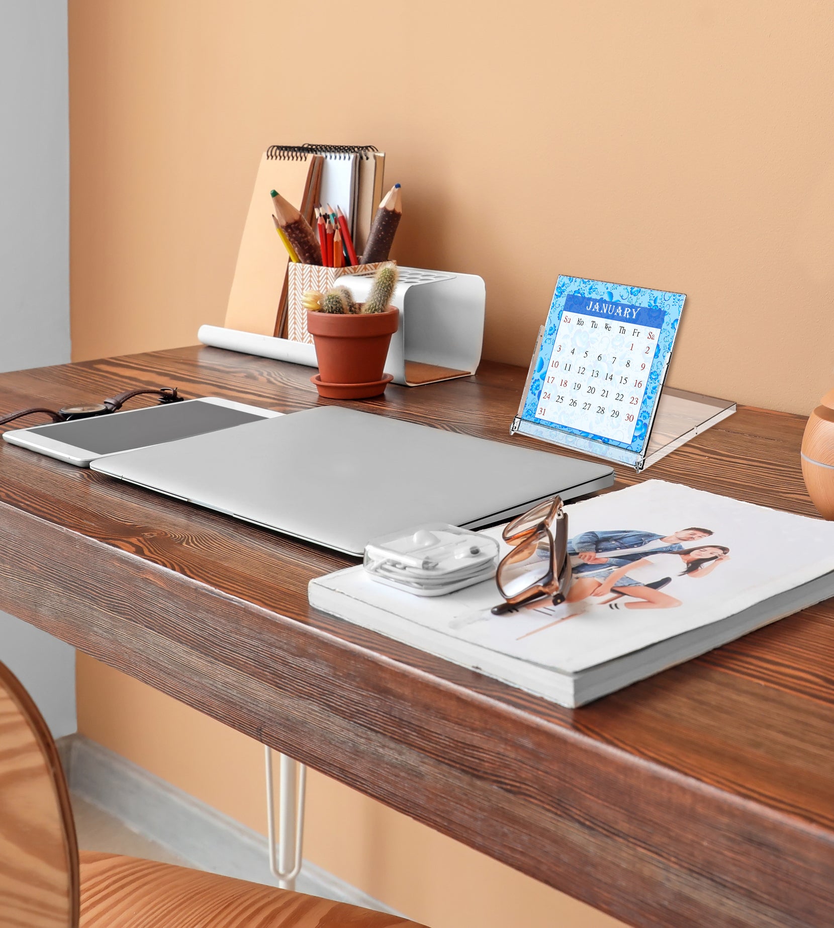- 2027 CD-Style Desk Calendar covers 12 months from January 2027 to December 2027 in a Beautiful self-standing jewel case