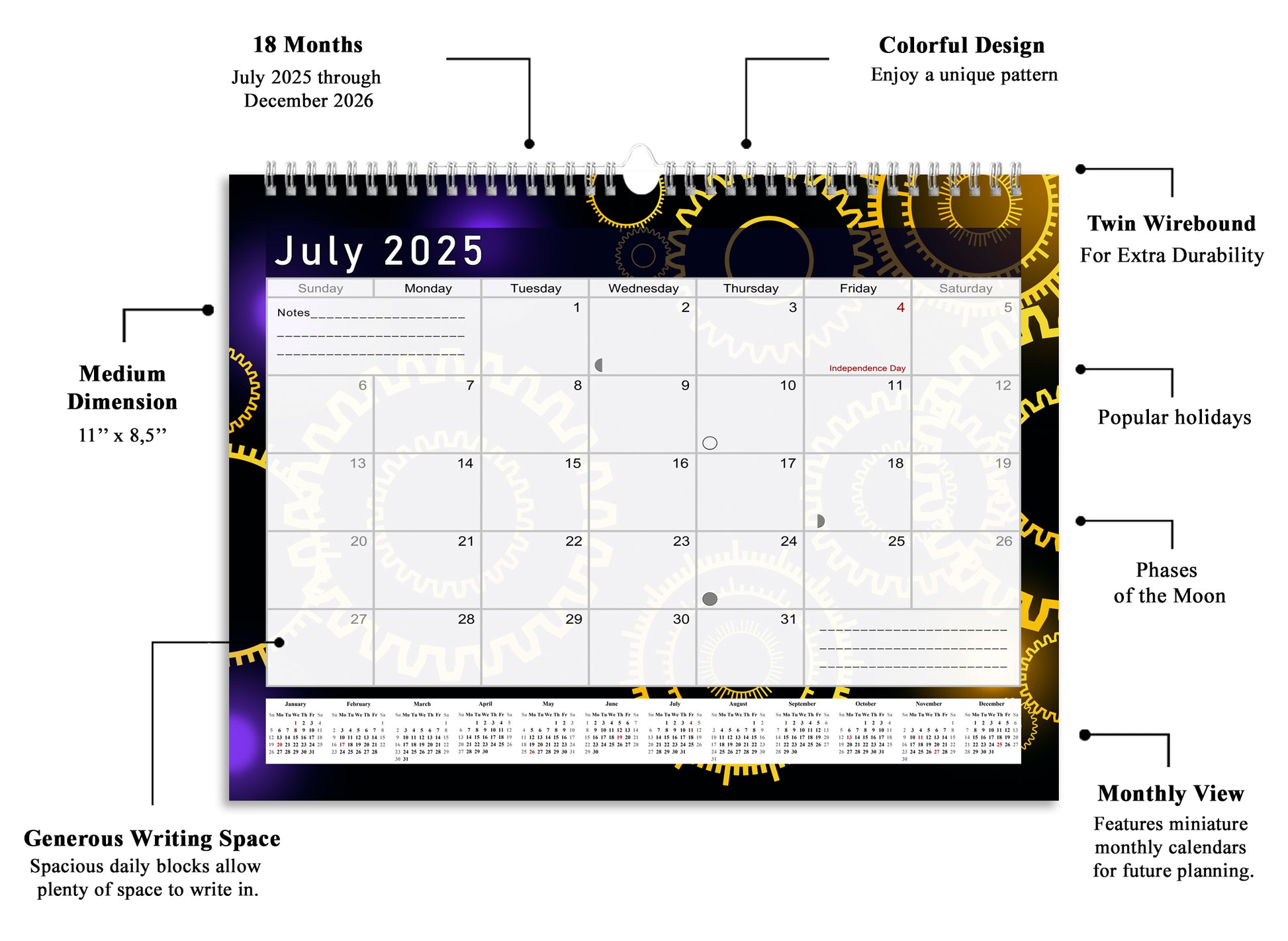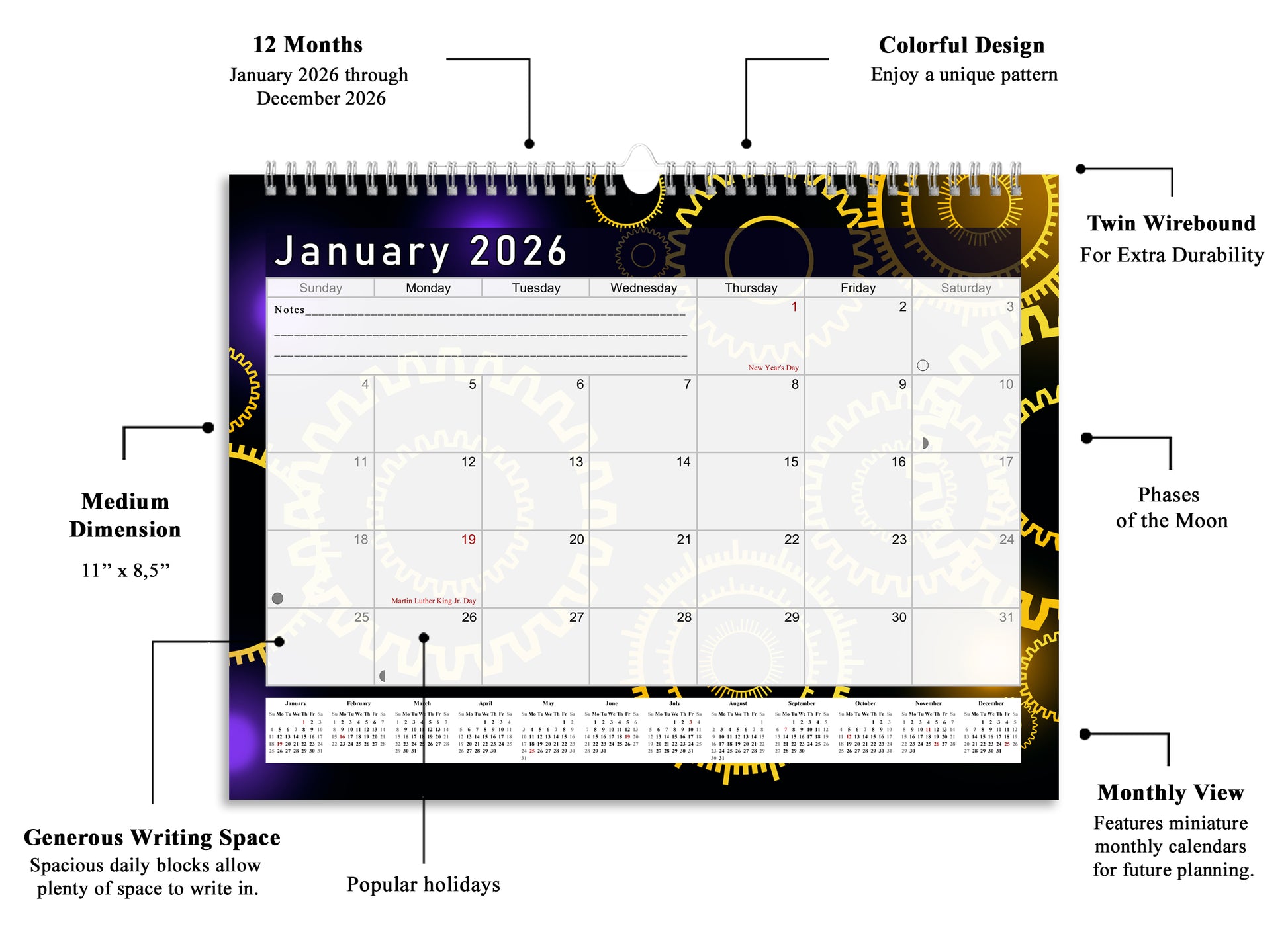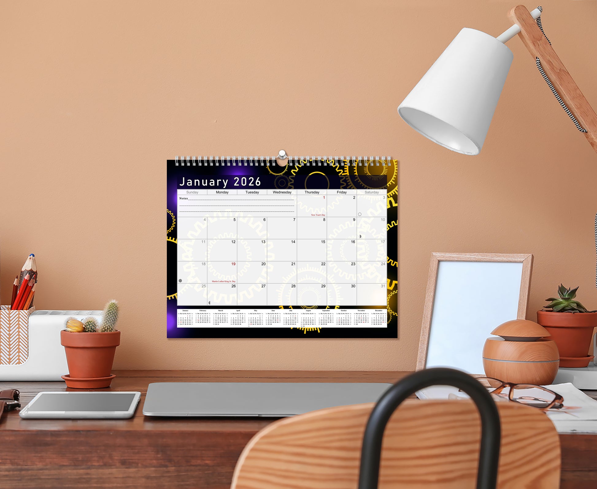 2025-2026 Monthly Spiral-Bound Wall / Desk Calendar - Desktop / Wall Blotter Calendar / Planner - (Edition #09)