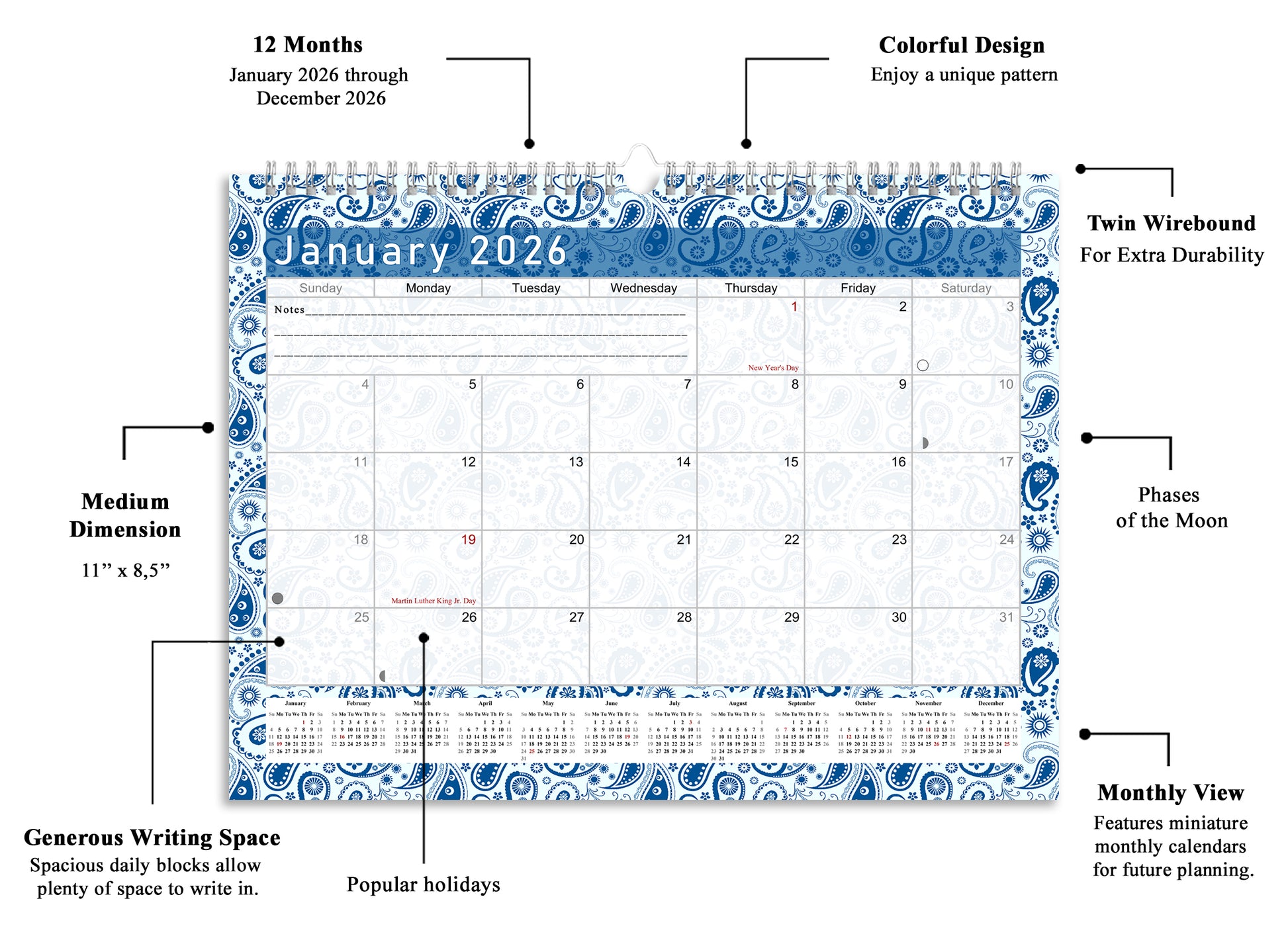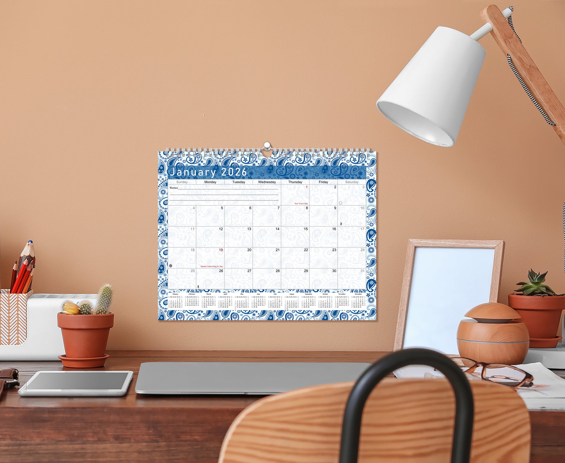 2025-2026 Monthly Spiral-Bound Wall / Desk Calendar - Desktop / Wall Blotter Calendar / Planner - (Edition #21)