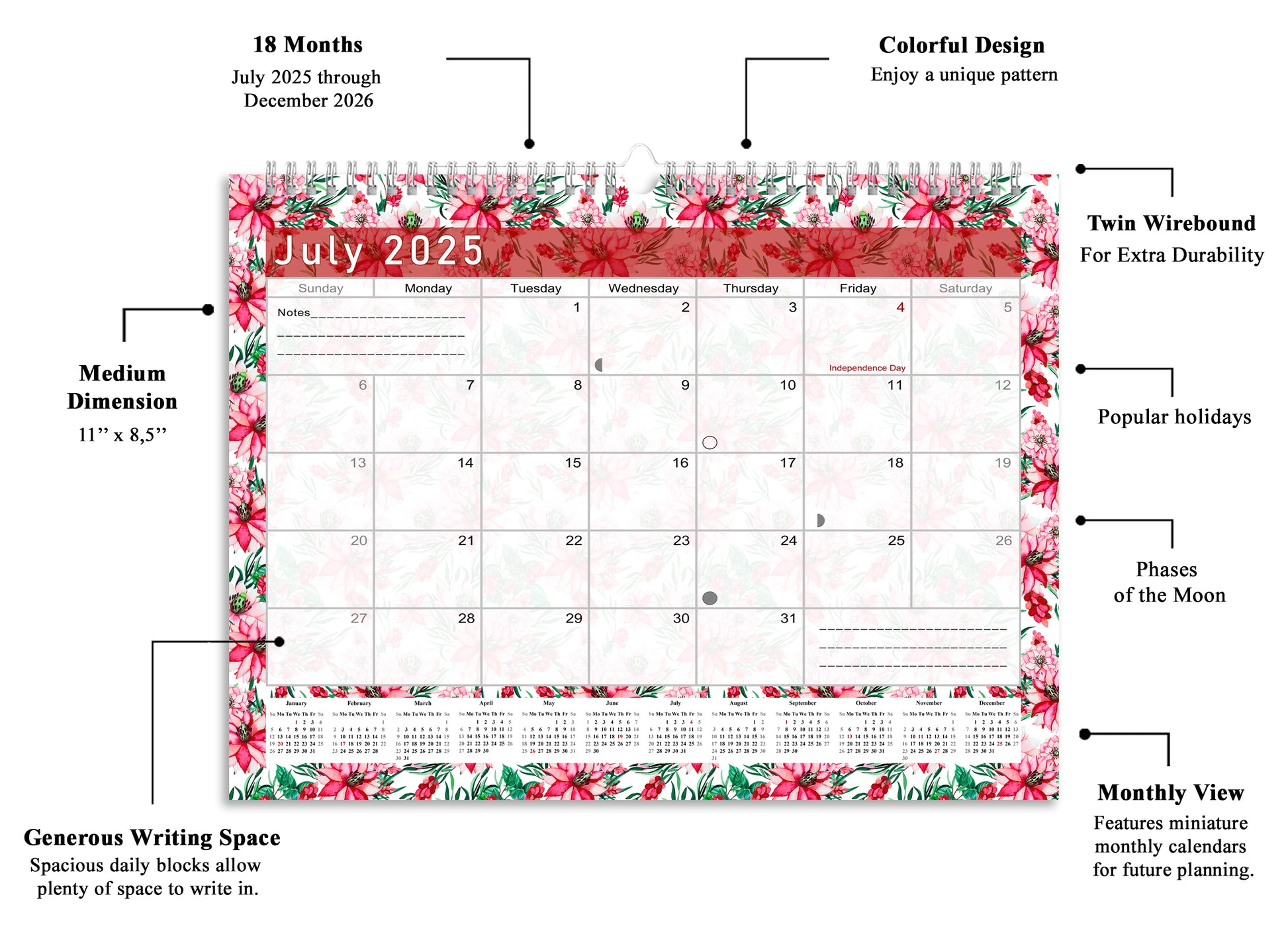 2025-2026 Monthly Spiral-Bound Wall / Desk Calendar - Desktop / Wall Blotter Calendar / Planner - (Edition #22)