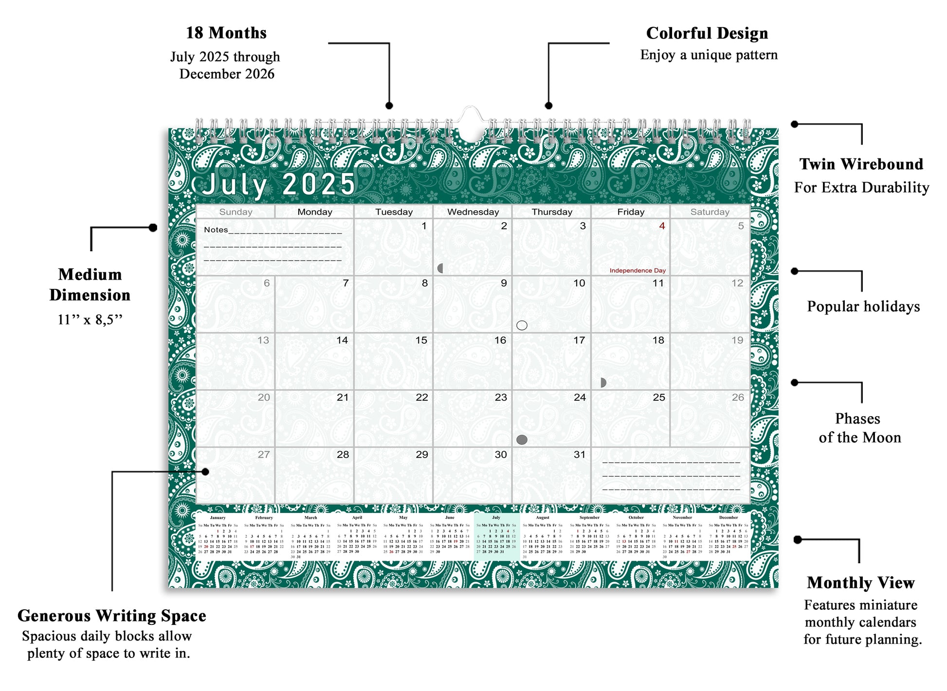 2025-2026 Monthly Spiral-Bound Wall / Desk Calendar - Desktop / Wall Blotter Calendar / Planner - (Edition #24)