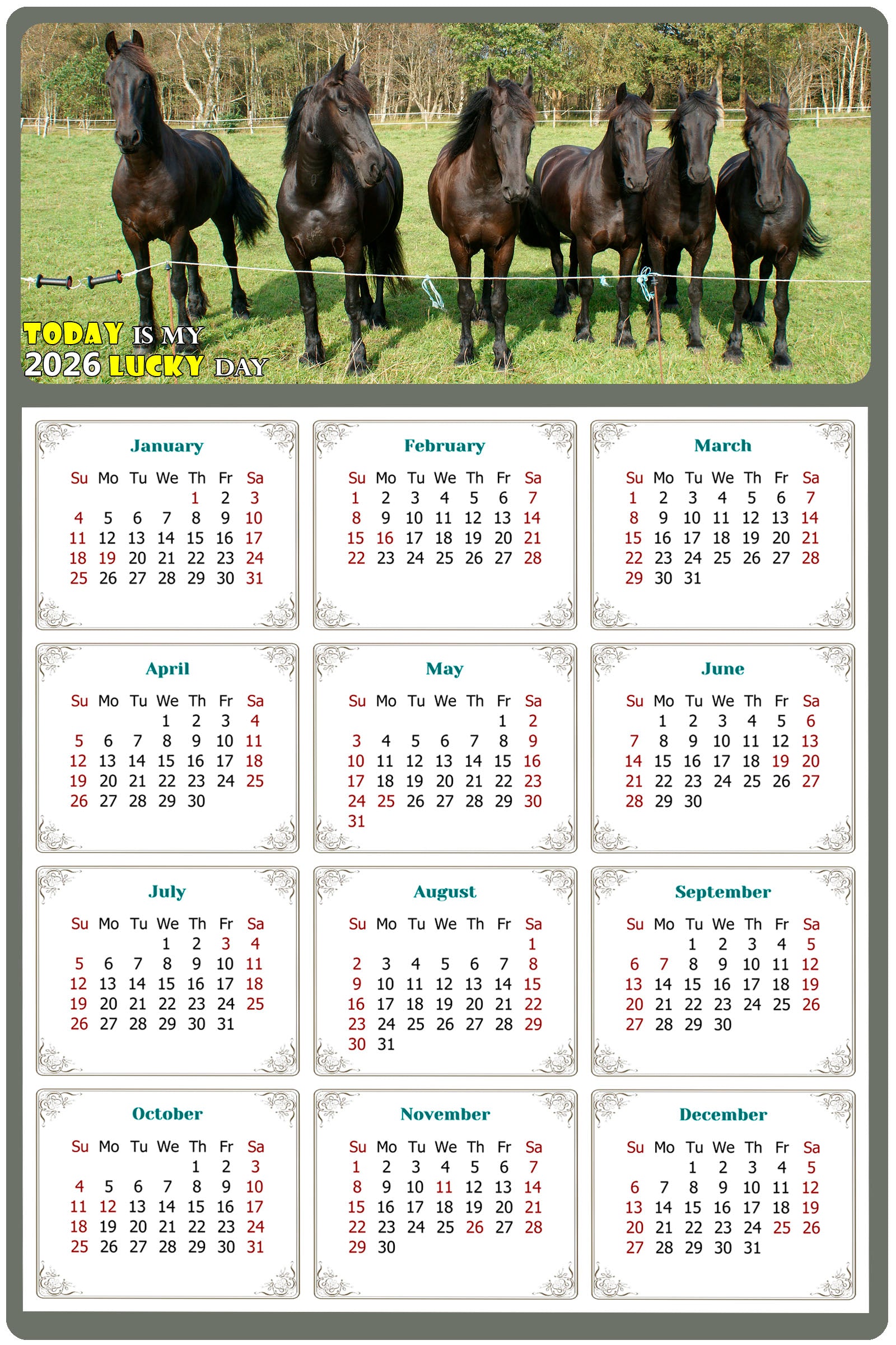 2026 Magnetic Calendar - Calendar Magnets - Today is my Lucky Day - (Fade, Tear, and Water Resistant) - Horses Themed 06