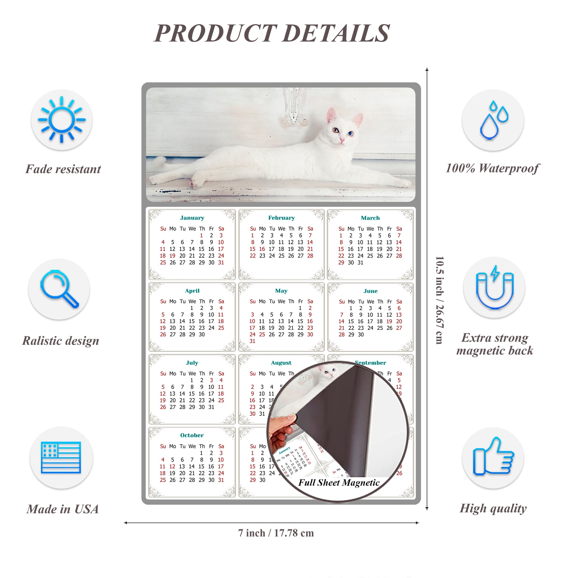 Made in the USA - The magnetic calendar measures. 5.25" x 8" inches and 7" x 10.5" inches - Printed in full color on high-quality Matte Polypropylene / Vinyl (Fade, Tear, and Water Resistant). The strong magnet on the back of the calendar makes it easy to use on the fridge, file cabinet, locker, or any metal surface