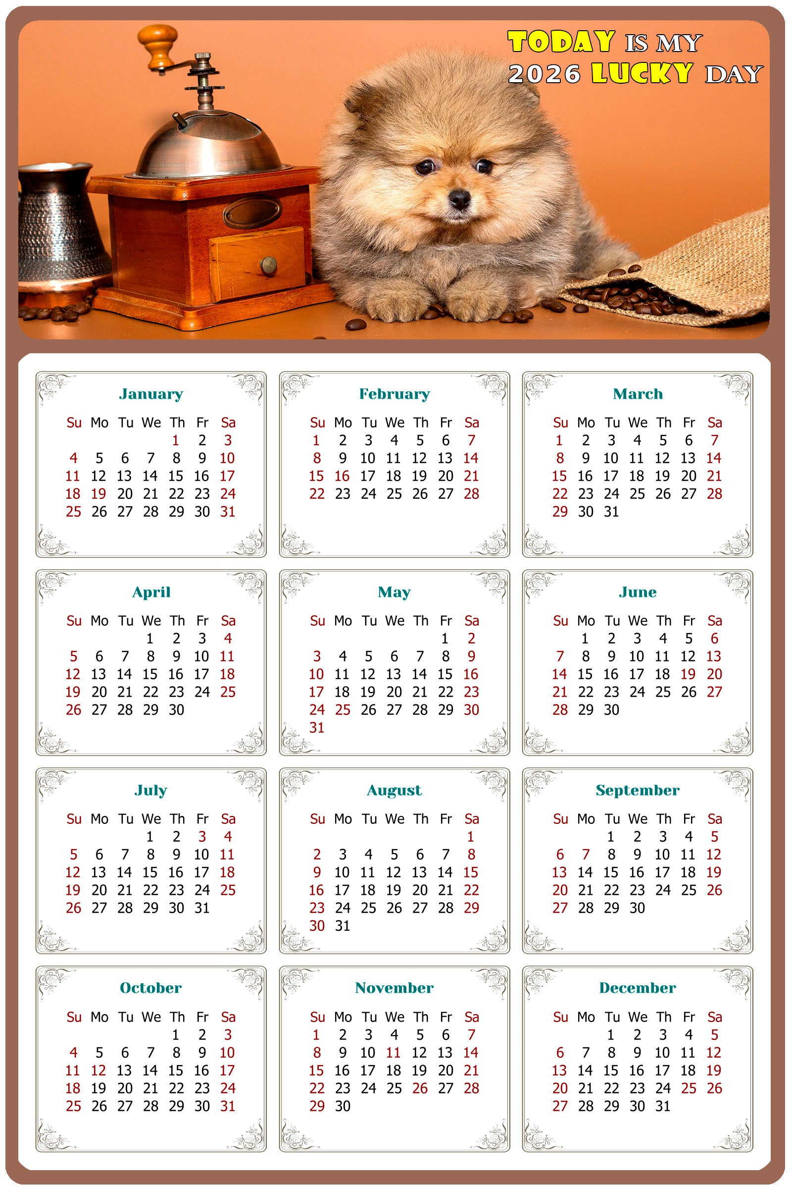 2026 Magnetic Calendar - Today is My Lucky Day (Fade, Tear, and Water Resistant)- Dogs Themed 019