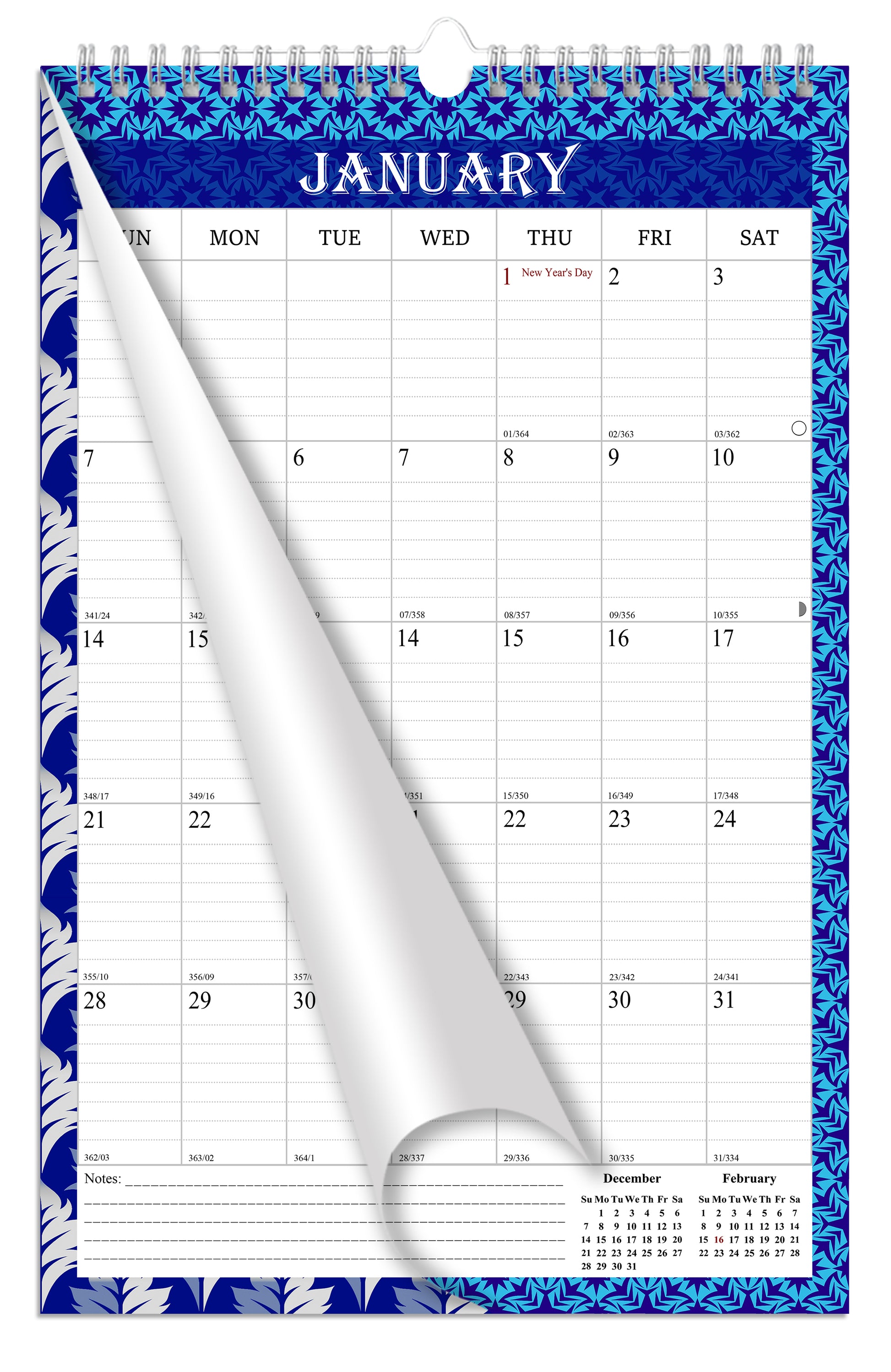 High-quality paper features superior ink bleed resistance - One month per page format has ruled daily blocks and two reference calendar blocks for quick date checking + Holidays marked + Julian date + Notes space for daily summary