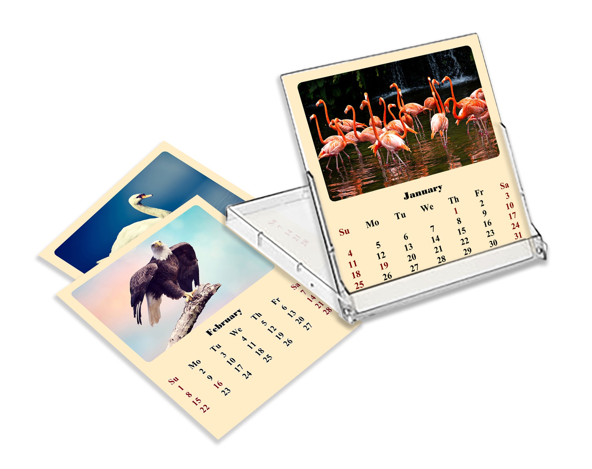 - CD-style jewel box case opens to form an easel: size: 4.75 x 5.5 inches open. Use on a table or desk. More stable than traditional easel calendars. The calendar covers 18 months from July 2025 to December 2026 in a Beautiful self-standing jewel case