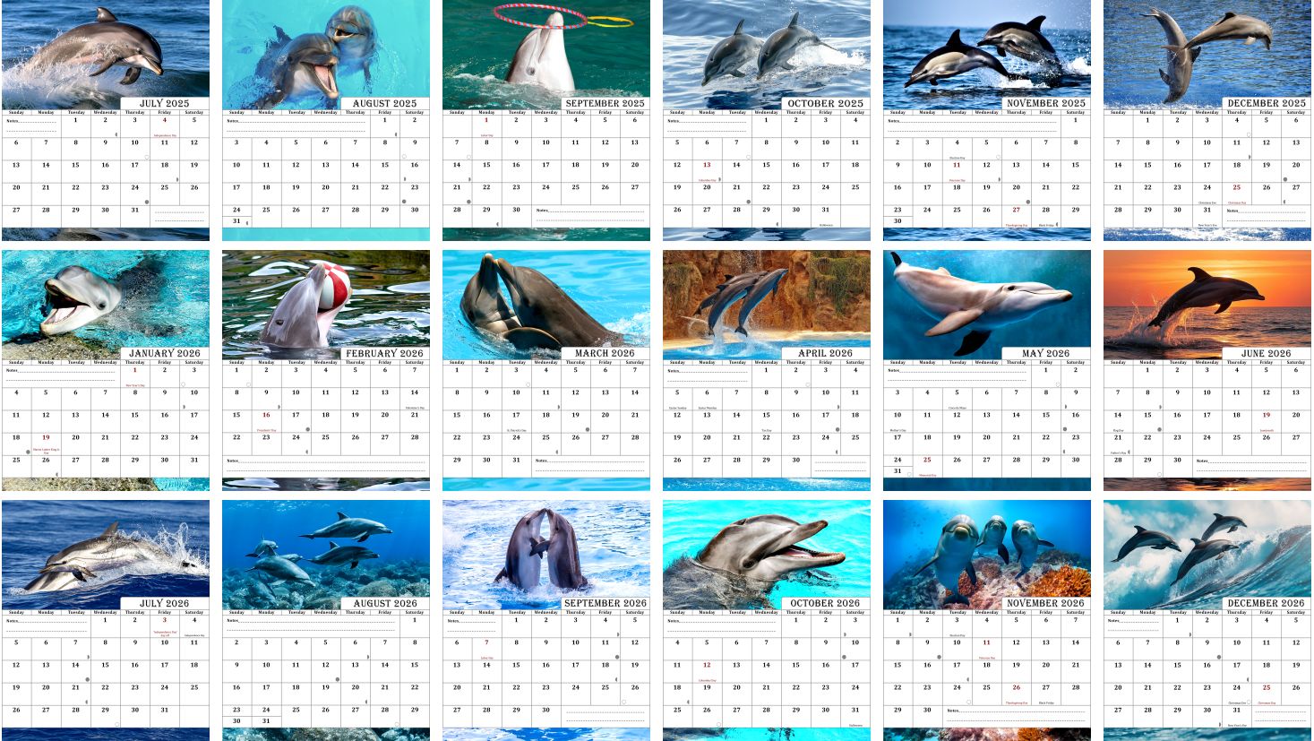 2025-2026 CD-Style Desk Calendar 18 Months Calendar (Dolphins)