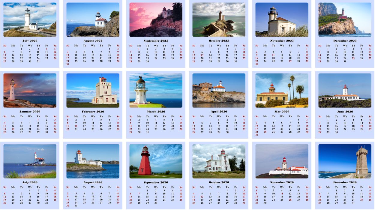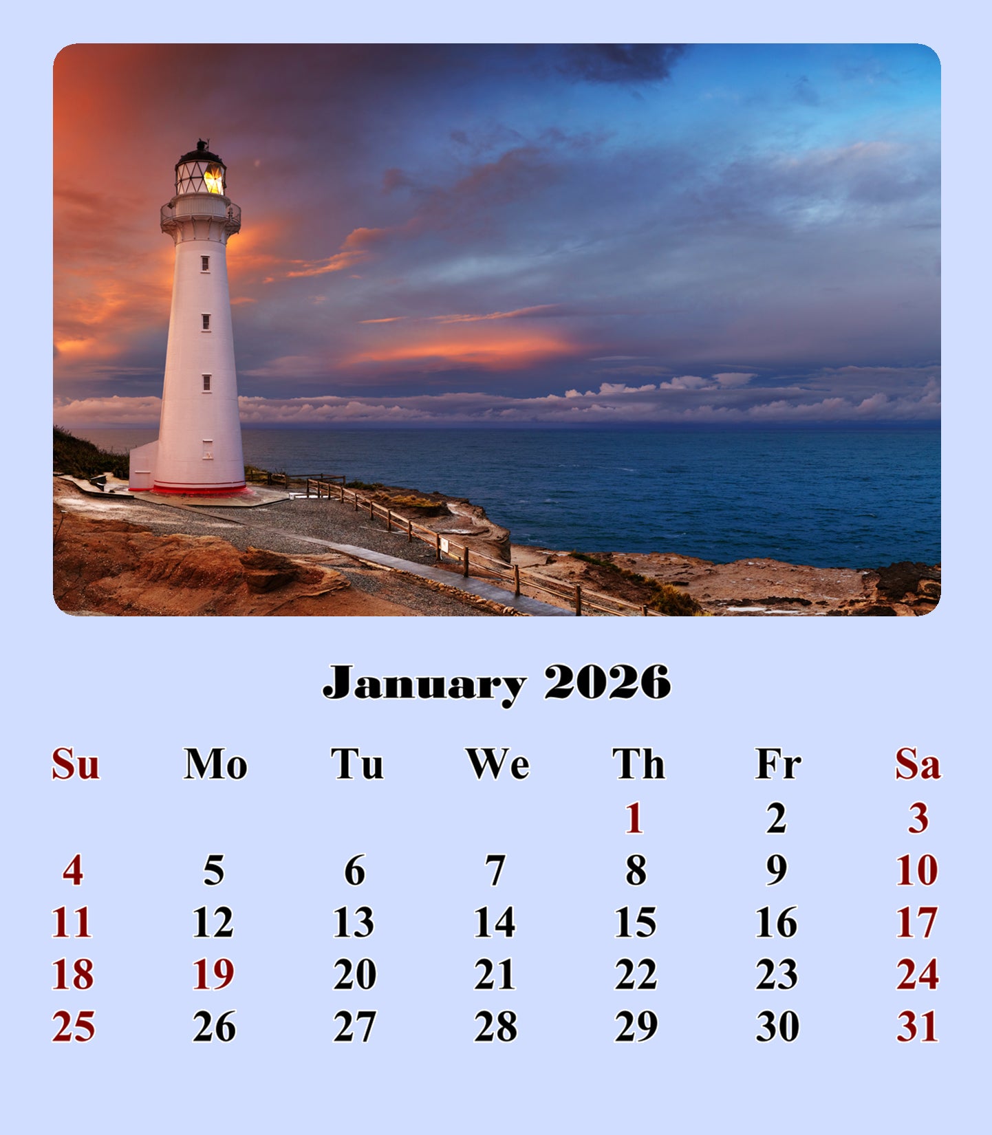 2025-2026 CD-Style Desk Calendar 18 Months Calendar (Lighthouses)