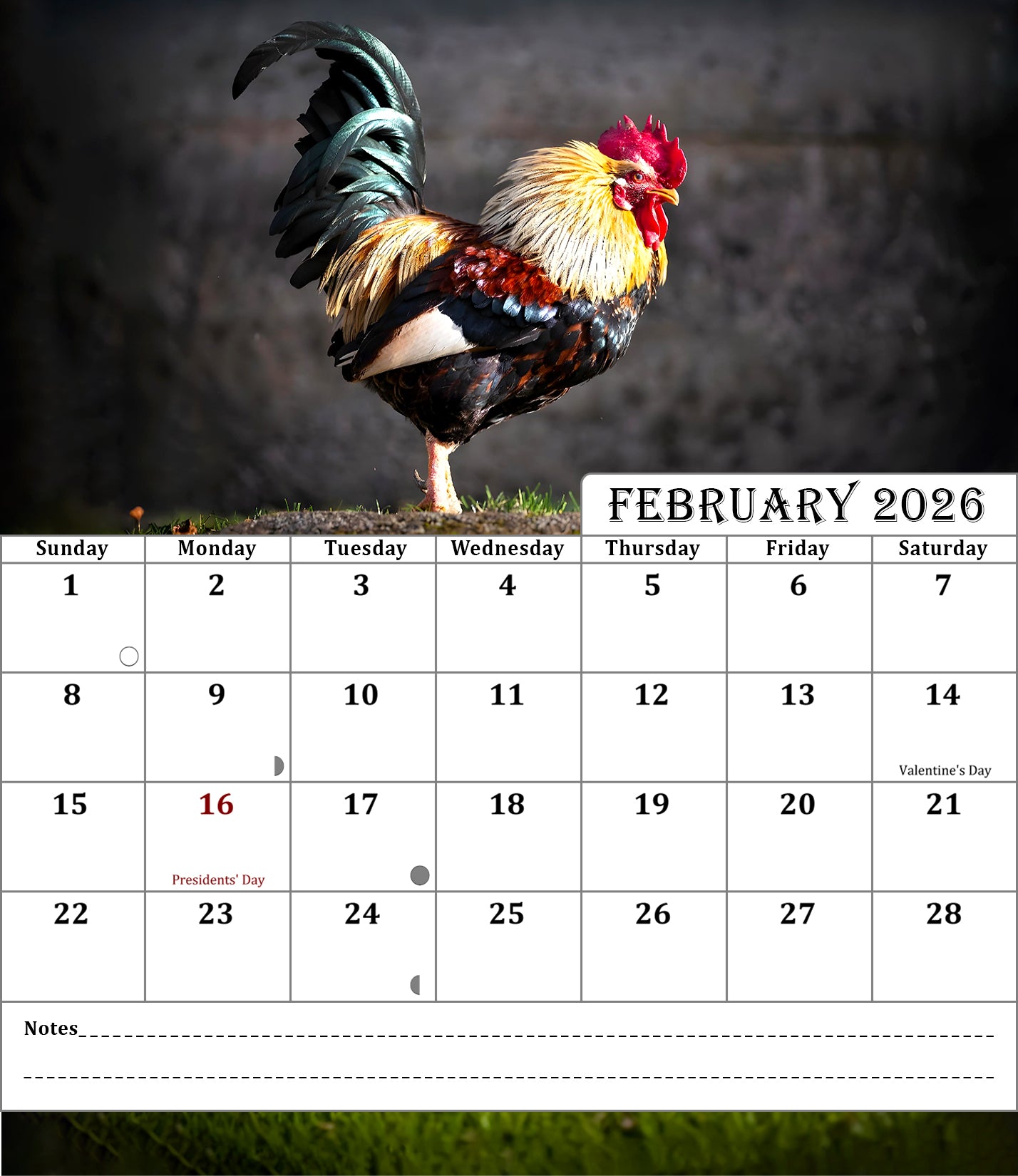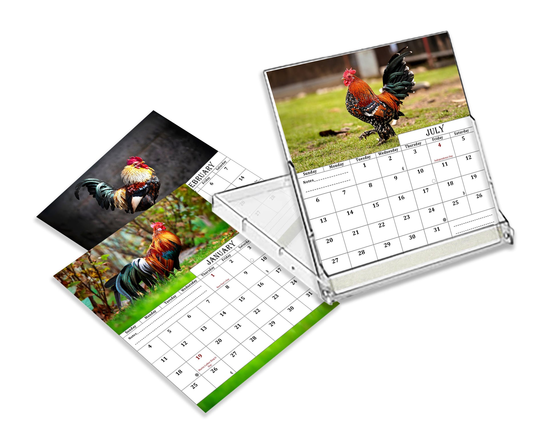 2025-2026 CD-Style Desk Calendar 18 Months Calendar (Roosters)