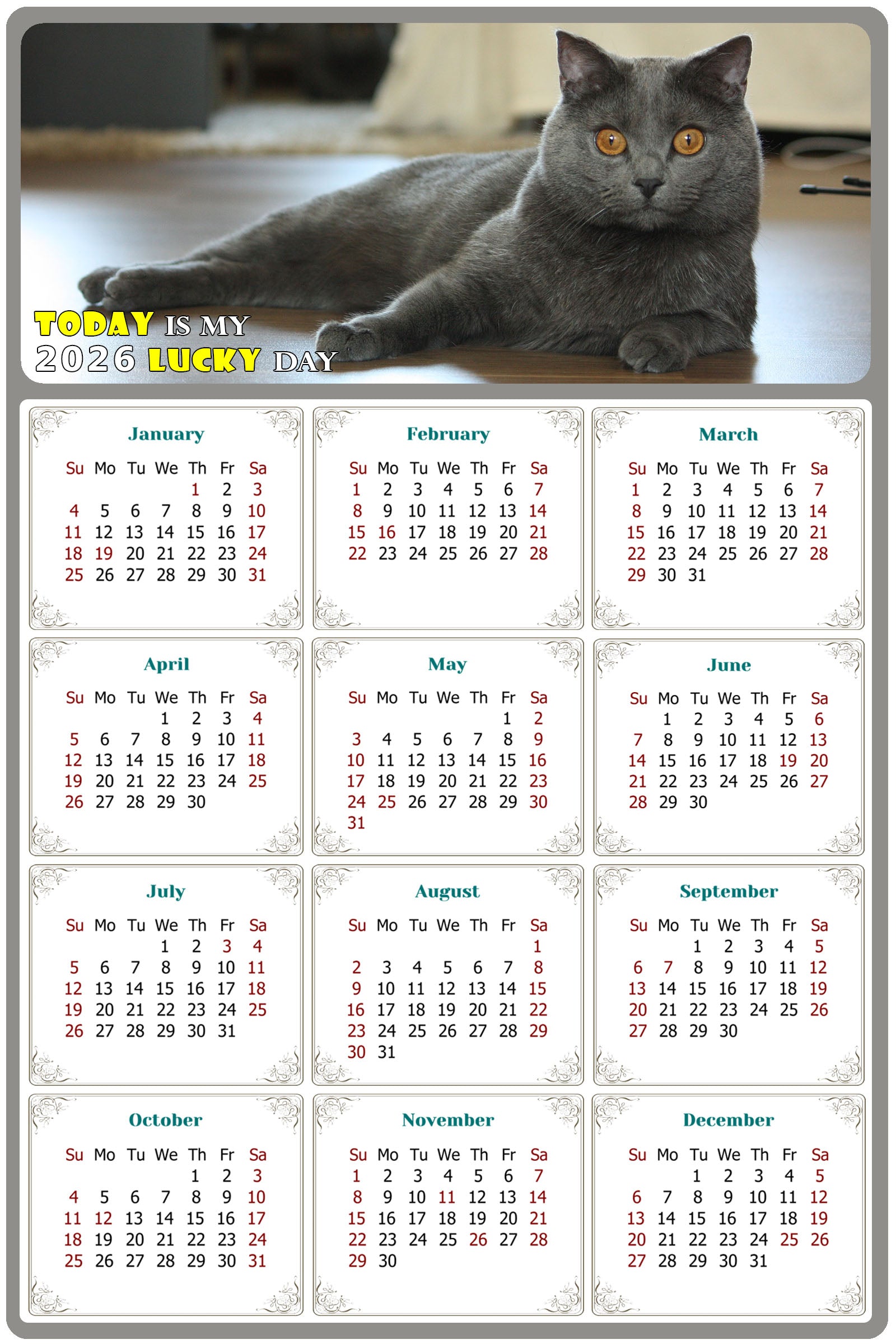 2026 Peel & Stick Calendar - Today is my Lucky Day Removable - Cat 014 (9"x 6")