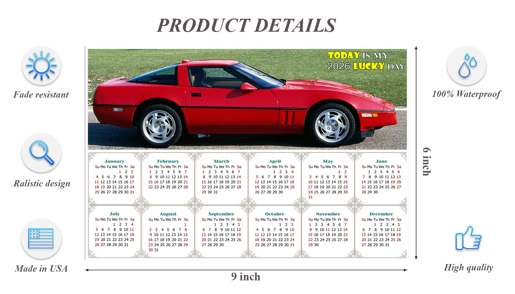 2026 Peel & Stick Calendar - Today is my Lucky Day - Removable, Repositionable - 046 (9"x 6")