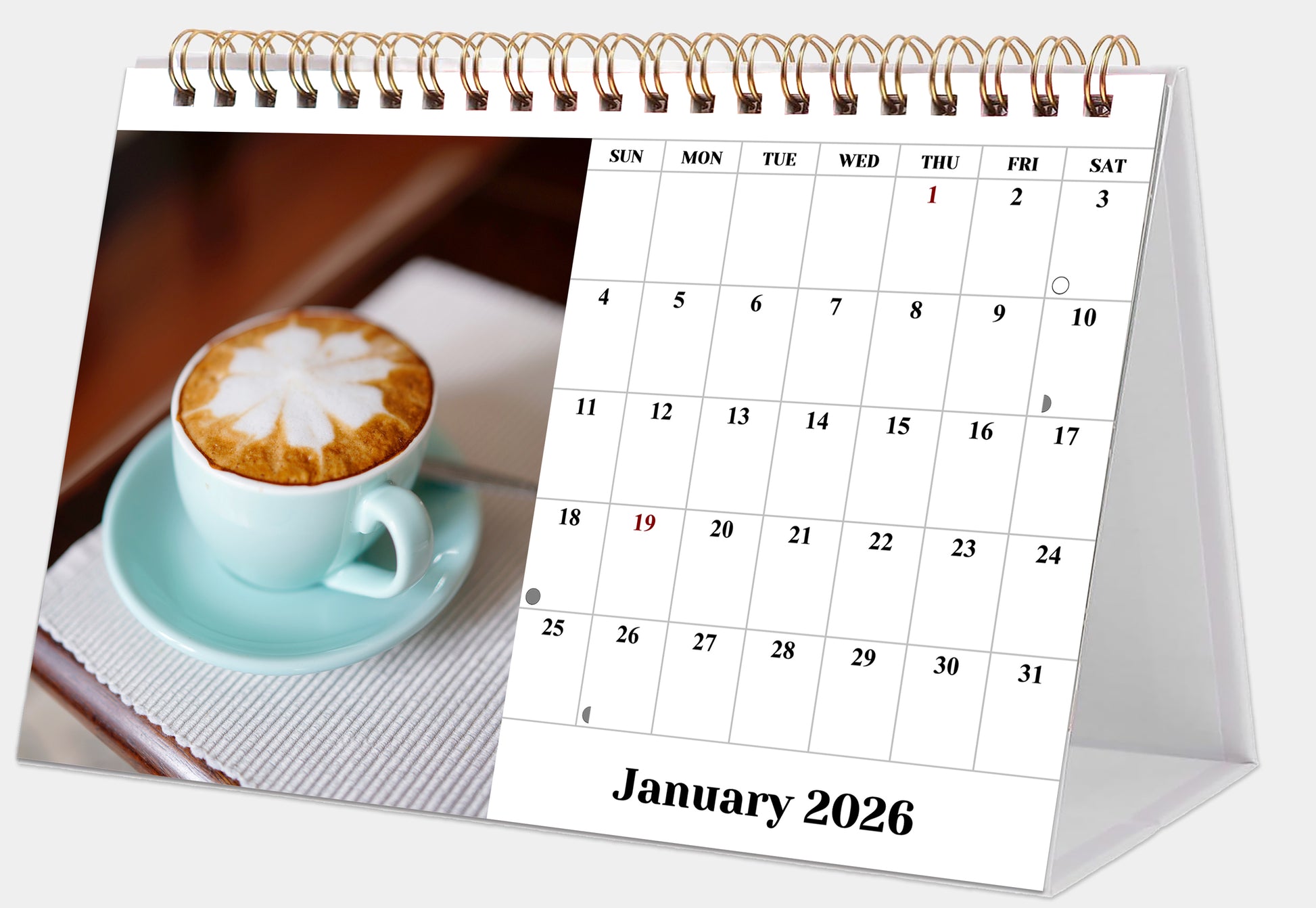 2026-12 Months Desk Calendar Desktop Planner with To-Do List (Coffee Time)