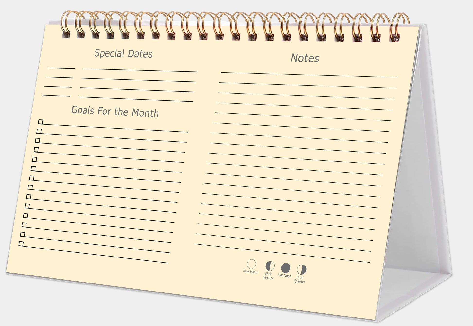 - Practical Features - The strong twin-wire binding makes this monthly stand-up calendar easy to flip. The foldable feature makes it easy to quickly jot down important notes This handy calendar is perfect for home, school, office organization, and dorm rooms. Flexible, removable, and versatile