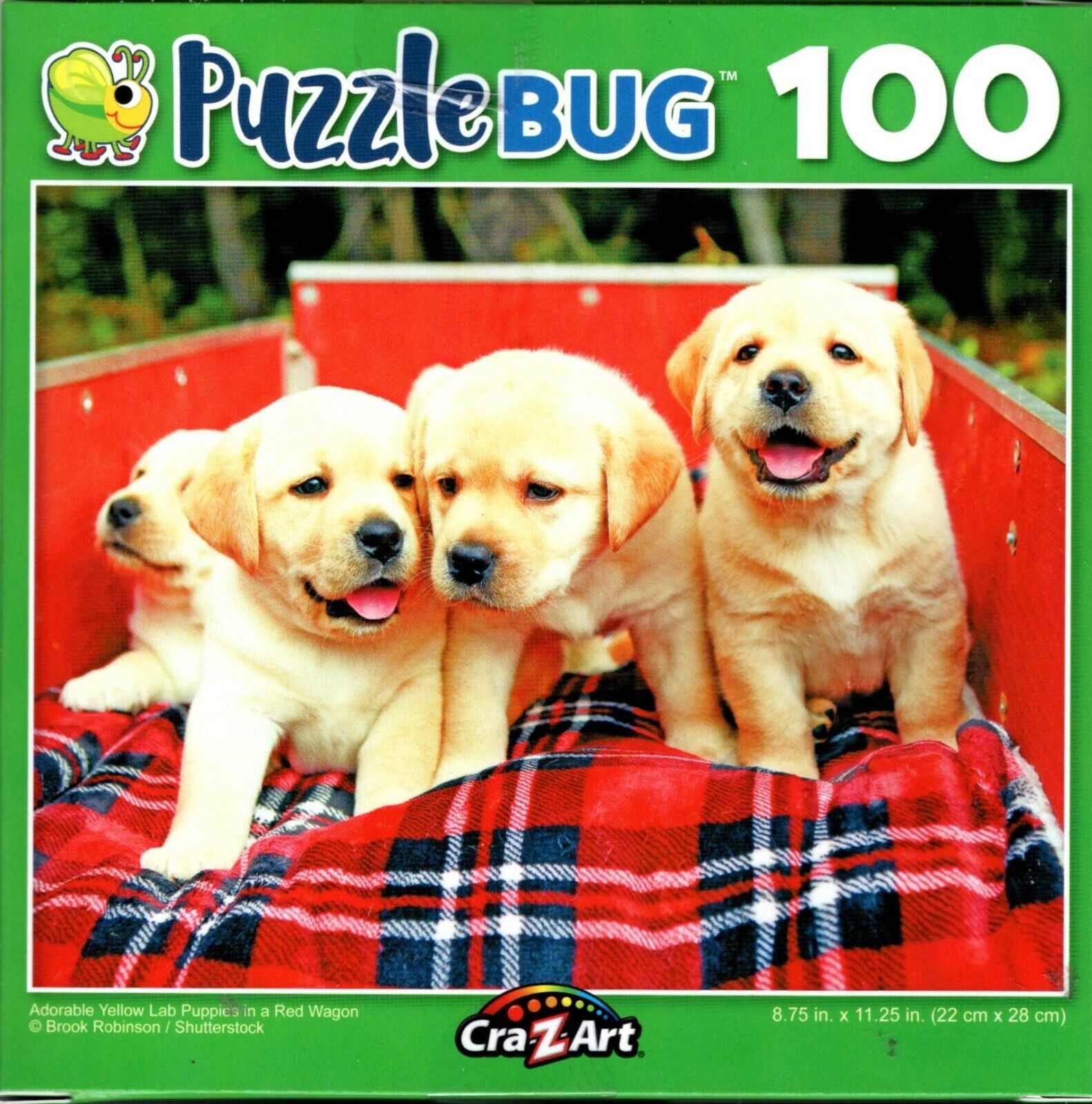 Adorable Yellow Lab Puppies in a Red Wagon - 100 Pieces Jigsaw Puzzle