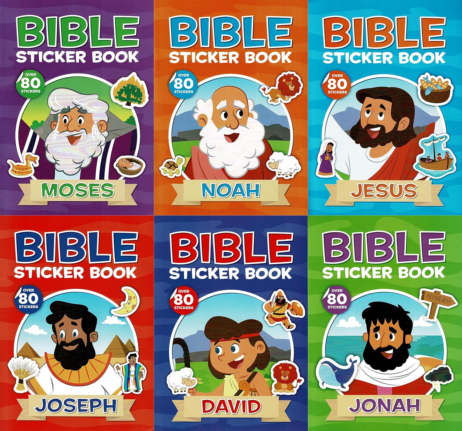 Jonah, Noah, Moses, Joseph, Jesus, David - Sticker Book Over 80 Stickers (Set of 6 Books) v3