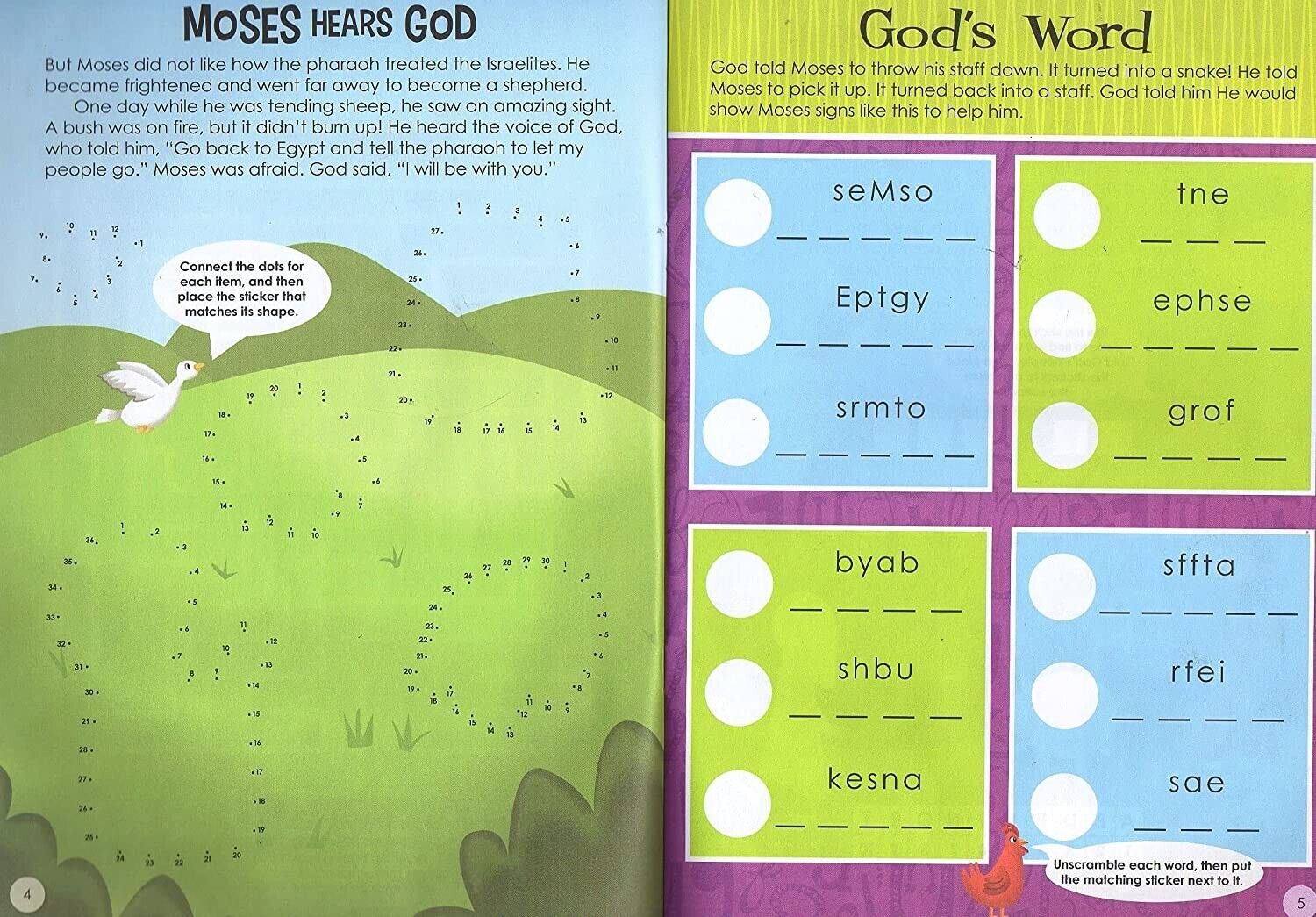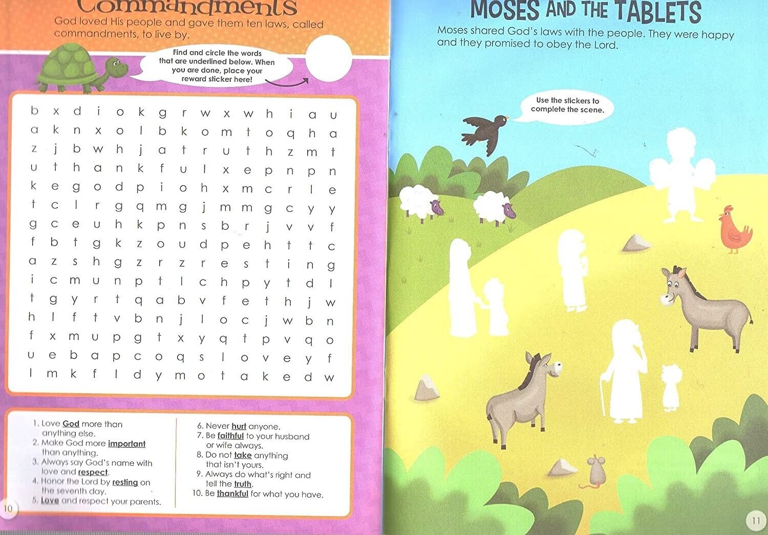 - Share with your child your love of timeless Bible stories while having fun together! Each colorful book is a storybook & an activity book in one. After you read the story together, your child can complete the engaging activities on each page. Brimming with over 80 stickers, these books encourage creative play & fine motor skills - all while reinforcing the values you hold dear. Celebrate God's love together!