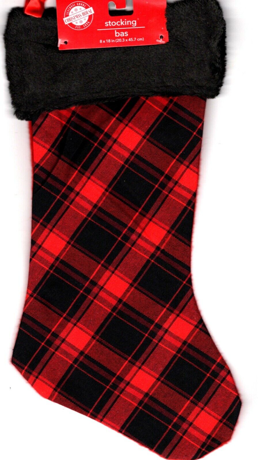 Christmas Holiday 18 Inch Classic Red and Black Plush Felt/Velvet Stockings
