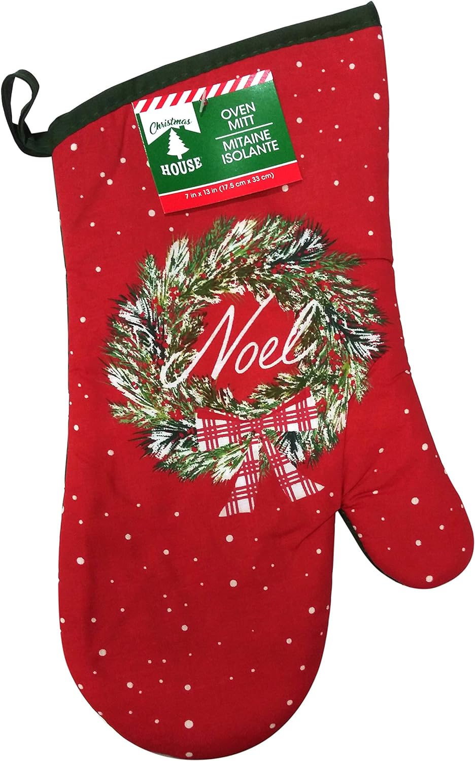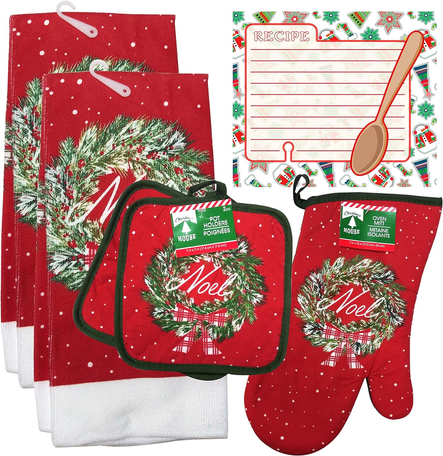 Christmas - Holiday Baking Kitchen Linen Set (6 Piece) - 2 Kitchen Towel, 2 Pot Holders, 1 Oven Mitt, 1 Magnetic Dry Erase Recipe Planner (Style 07)