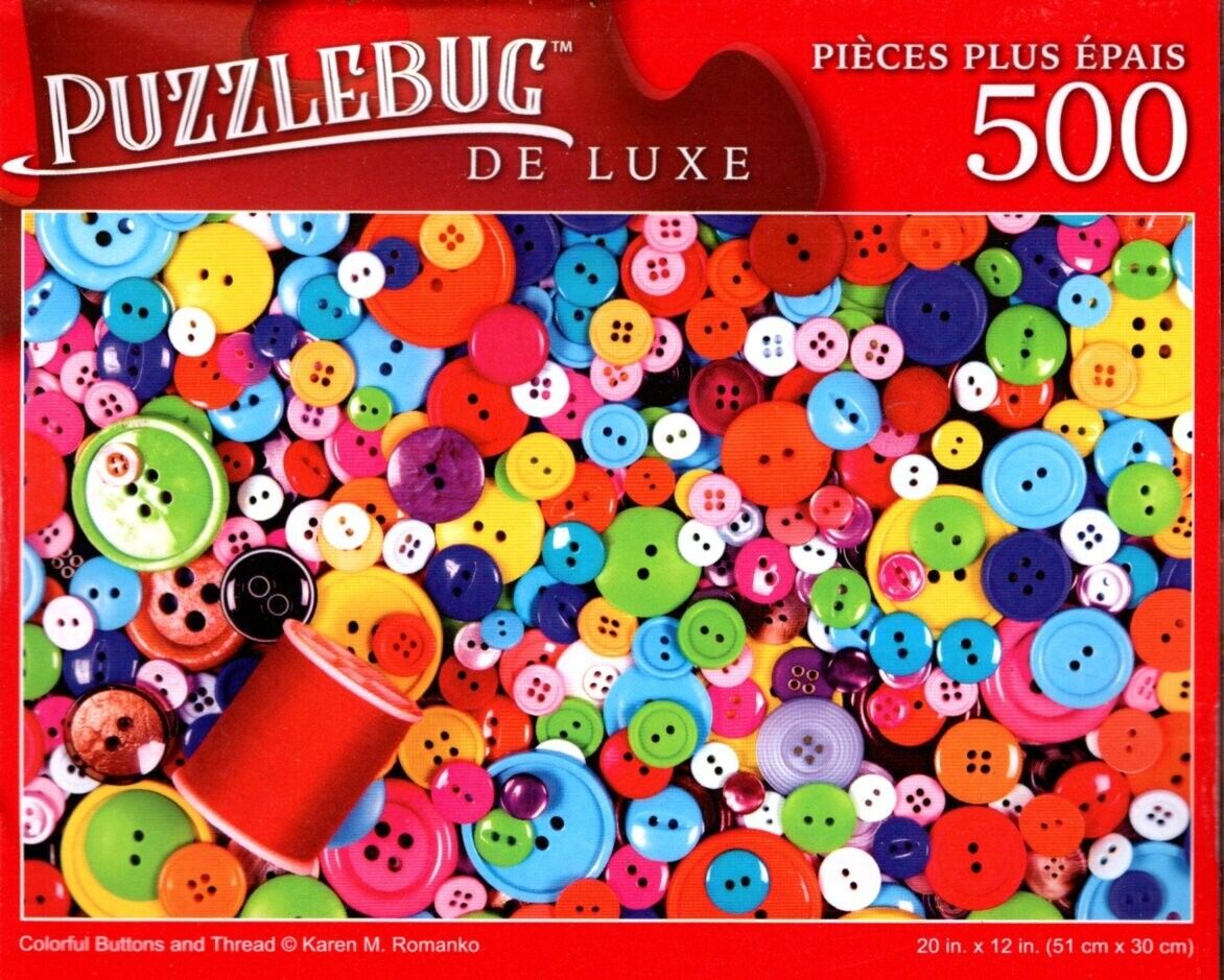 Colorful Buttons and Thread - 500 Pieces Deluxe Jigsaw Puzzle