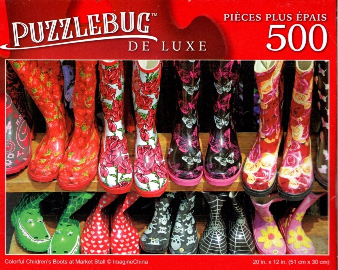 Colorful Children's Boots at Market Stall - 500 Pieces Deluxe Jigsaw Puzzle