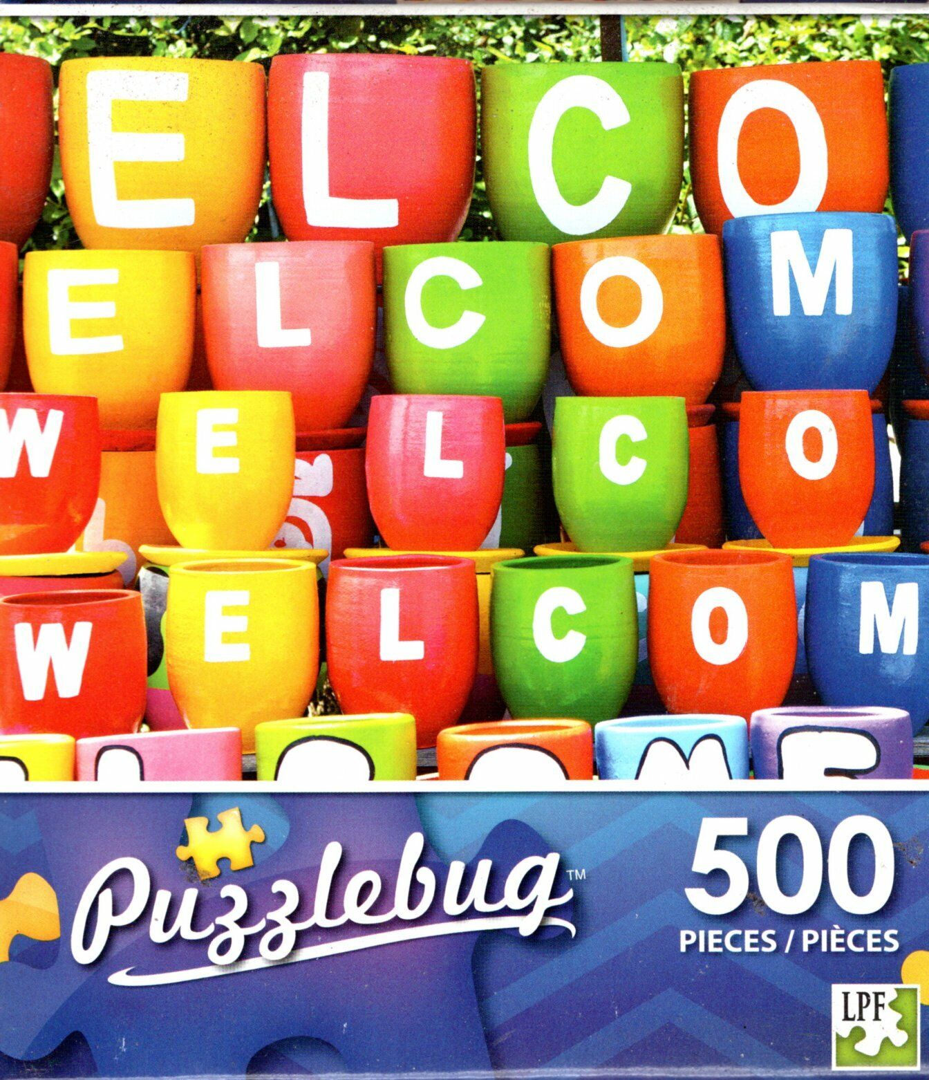 Colorful "Welcome" Pots - 500 Piece Jigsaw Puzzle Puzzlebug