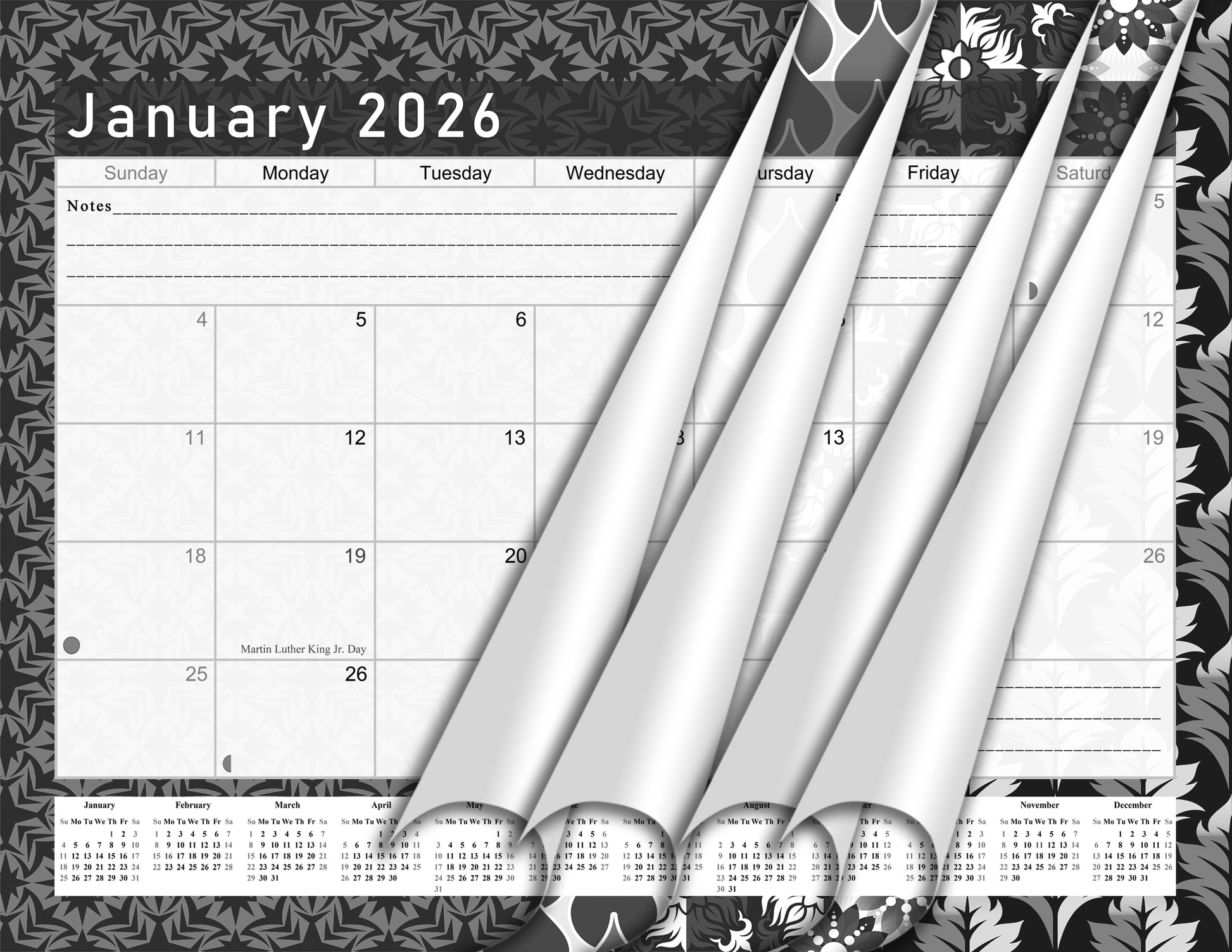 2025-2026 Monthly Spiral-Bound Wall/Desk Calendar - Desktop/Wall Blotter Calendar/Planner - (Edition B&W #017)