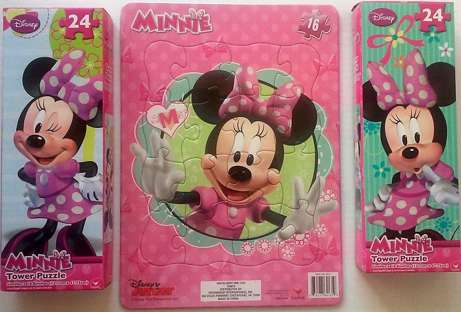 Disney Minnie Mouse 24 Piece Tower Puzzles & 16 Piece Board Puzzle Bundle Set