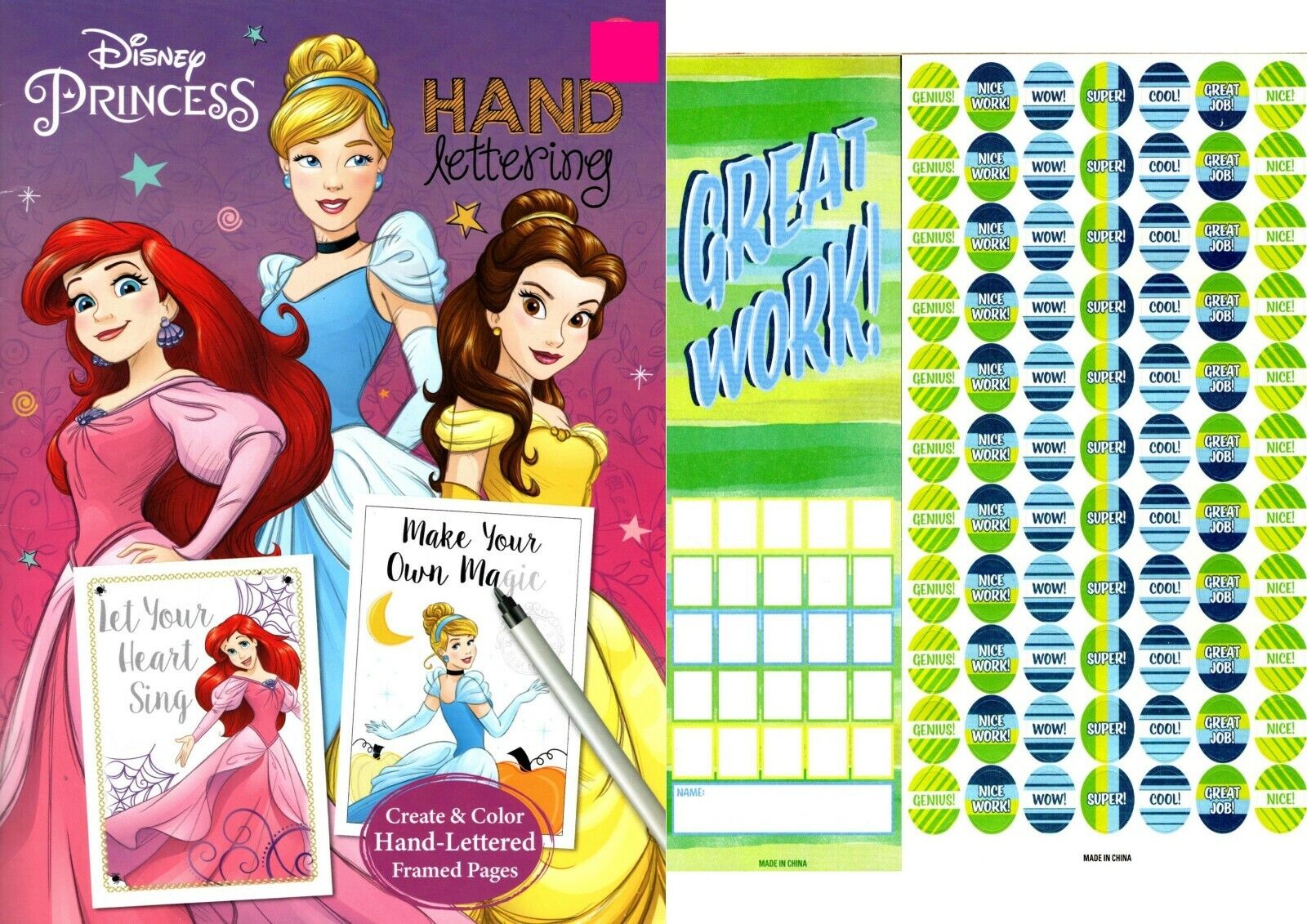 Disney Princess - Hand Lettering - Coloring & Activity Book + Award Stickers