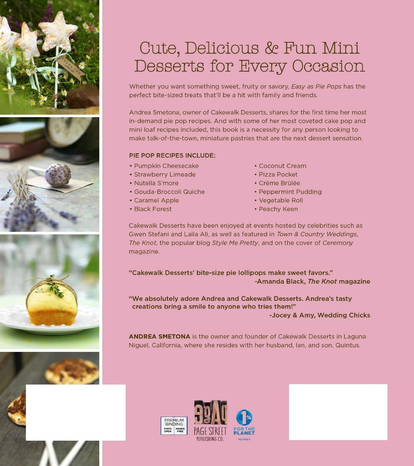 Andrea Smetona, the owner of Cakewalk Desserts, shares for the first time her most in-demand pie pop recipes. And with some of her most coveted cake pop and mini loaf recipes included, this book is a necessity for any person looking to make talk-of-the-town, miniature pastries that are the next dessert sensation.