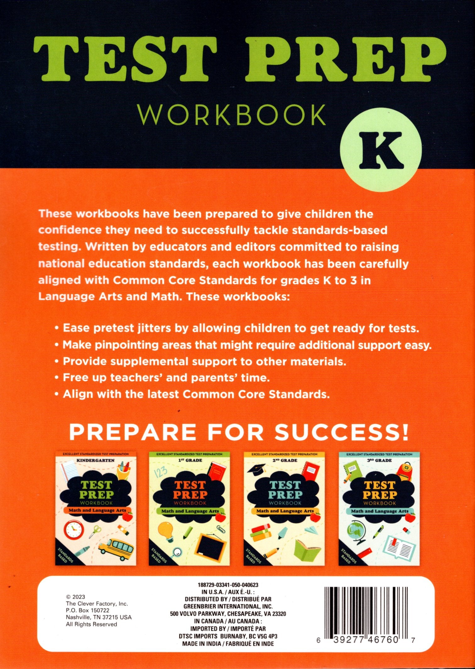 Kindergarten Math & Language Arts - Test Preparation Standards Based Excellent - Workbook
