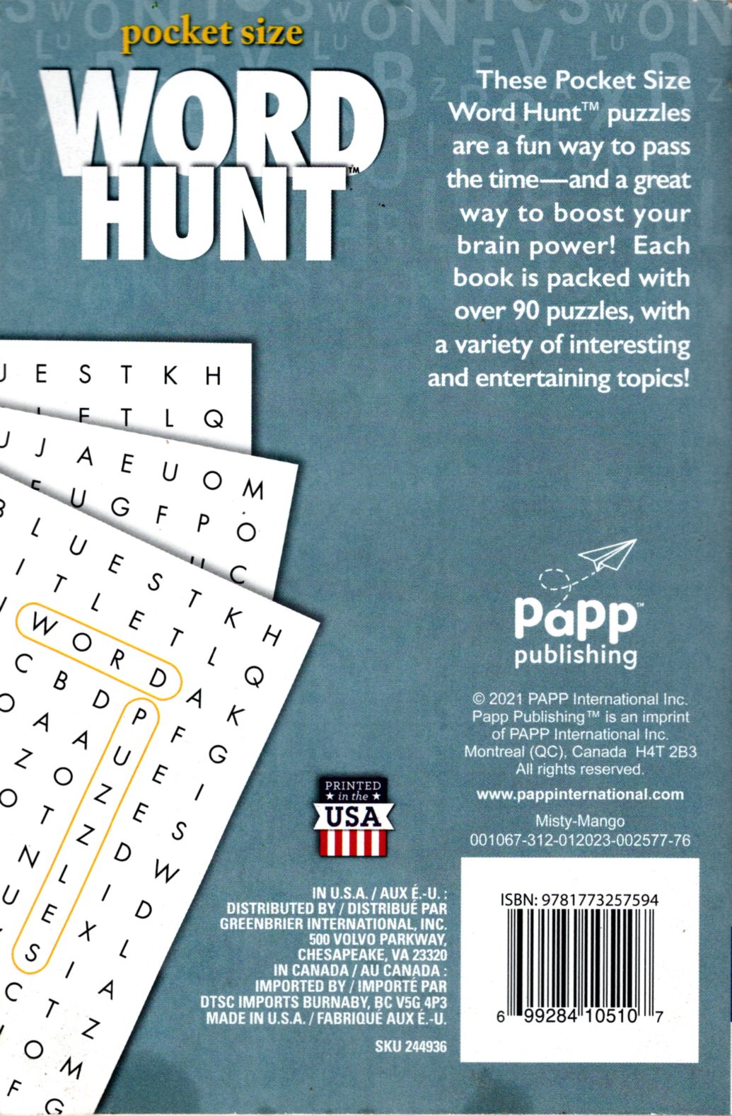 - LARGE PRINT Word Hunt Word-Finds Word Search Seek Puzzle Book is packed with more than 96 puzzles. A great way to sharpen your memory, boost your brain power and powers of observation - Printed in the USA