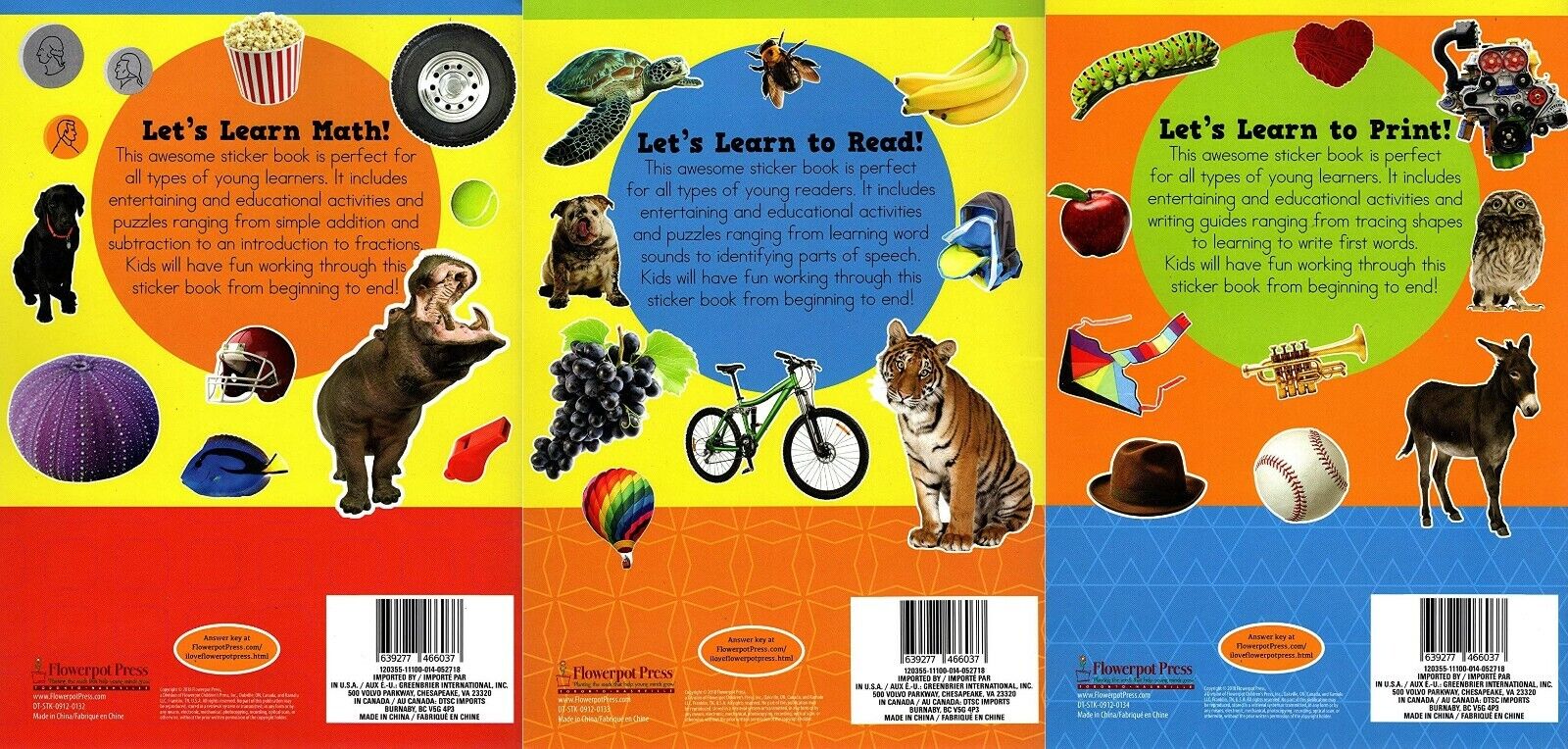 - (Set of 3 Books) Flowerpot Press Let's Learn to Read / Let's Learn Math / Let's Learn to Print - Sticker and Activity Book