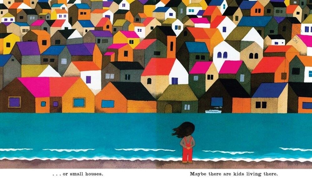 Renowned children's book creator Taro Gomi has created another masterpiece. In this beautiful testament to wondering, a young girl gazes out to where the water meets the sky and wonders what lies beyond the waves. Boats filled with toys? Skyscrapers filled with people? Houses filled with families? Or, maybe, over the ocean stands someone not so different from the girl herself, returning her gaze. In this celebration of imagination's power, young readers will find joy in the mystery of the faraway, the unknown, and the just-beyond. -