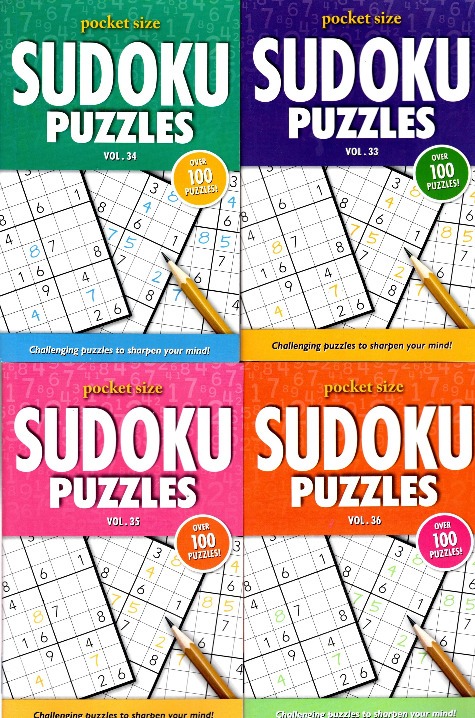 Pocket Size Sudoku Puzzles - Over 100 Challenging Puzzles - Vol.33-36