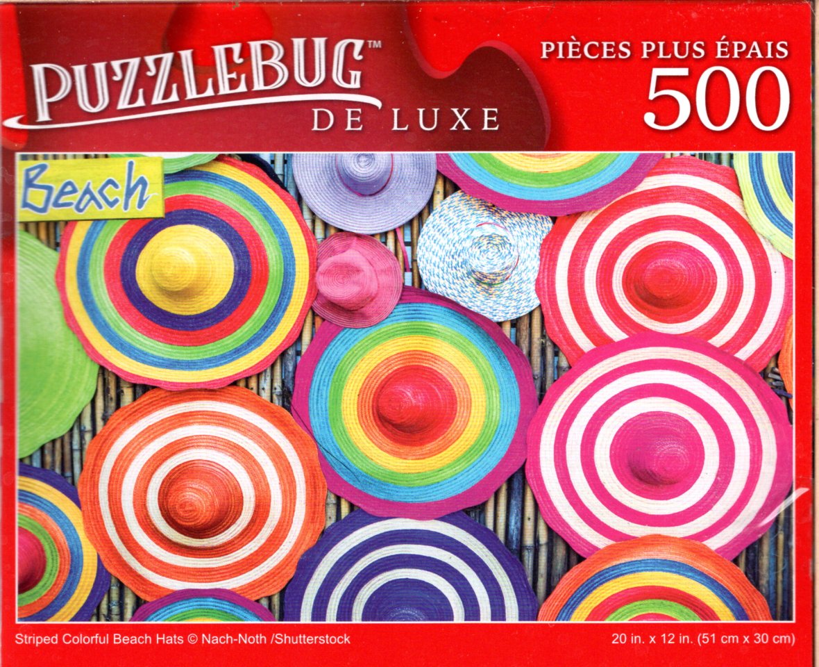 Striped Colorful Beach Hats - 500 Pieces Deluxe Jigsaw Puzzle