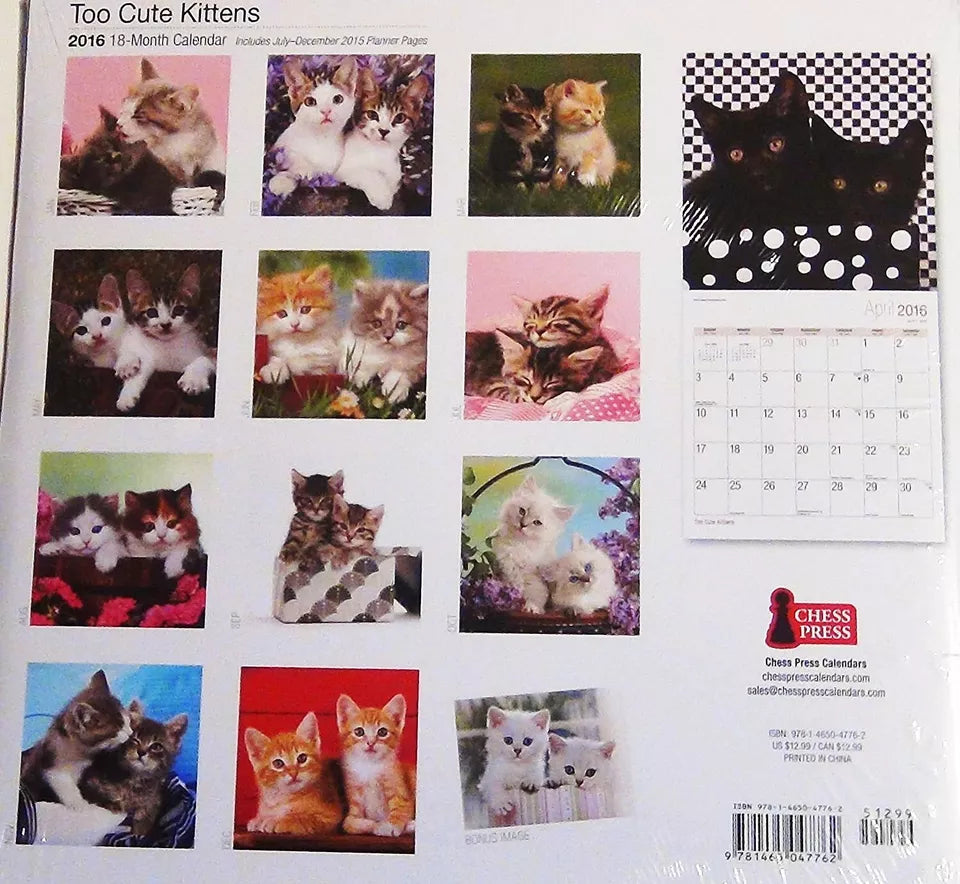 Too Cute Kittens 18-Month 2016 Wall Calendar (12 x 12)
